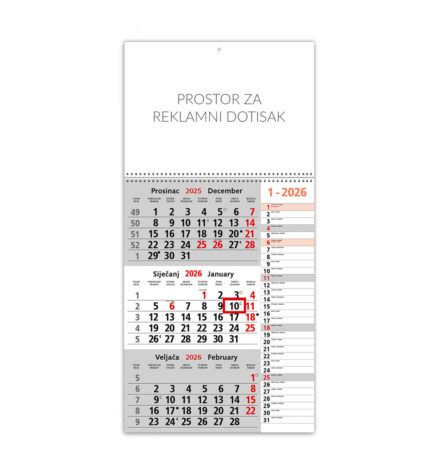 Trodjelni kalendar sa spiralom MEMO